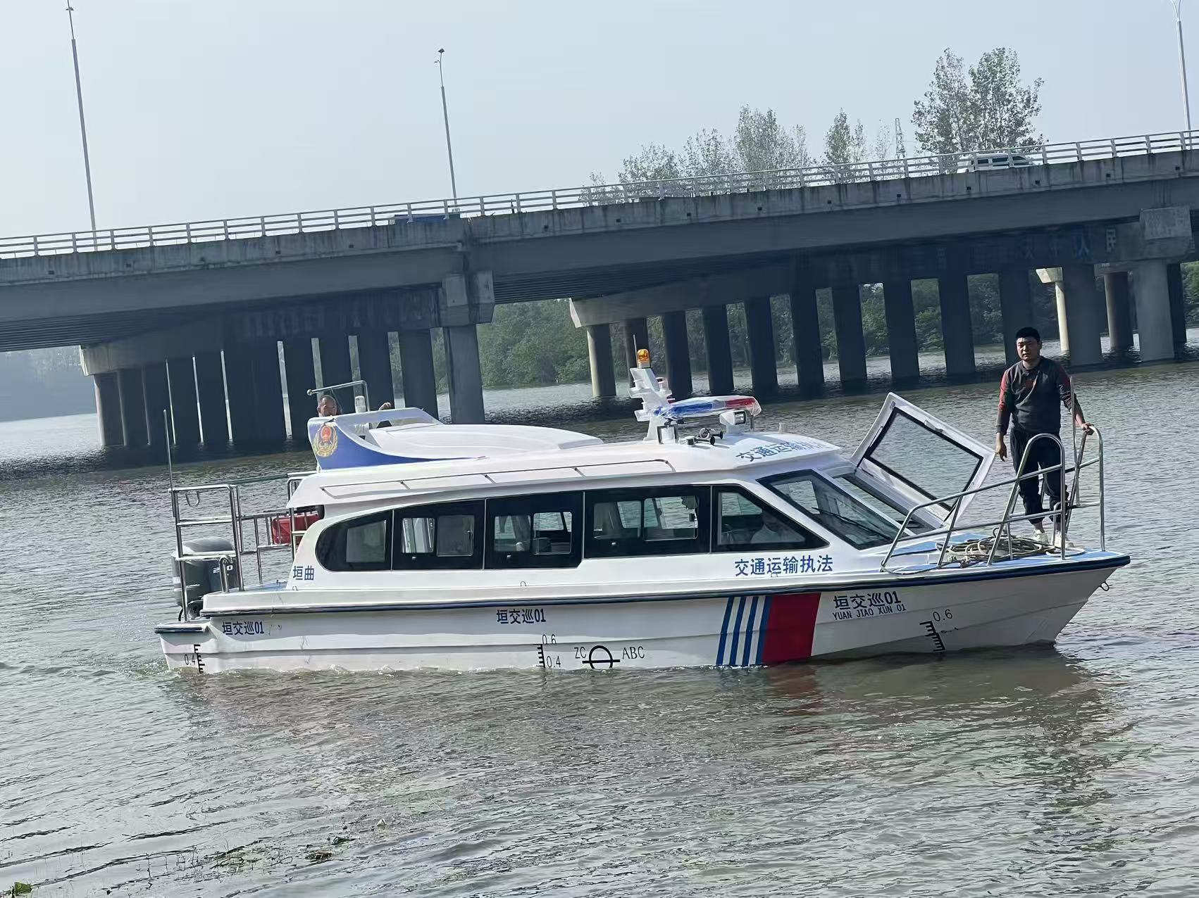 采用高性能玻璃钢材质一体成型,艇身光滑流畅、强度高、重量轻,比传统金属船体更轻盈,却拥有更强的抗冲击、抗腐蚀、抗老化能力。长期在水上作业,不惧日晒、海水、风浪侵蚀,使用寿命更长,日常维护更简单。